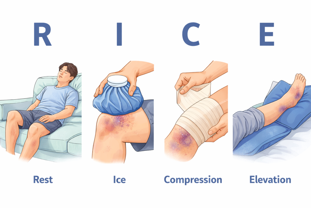 「打ち身って、とりあえず冷やせばいいの?」という質問がよくあります。実は、専門家も推奨する“RICE処置”の流れが、初期対応としてとても重要と言われています。