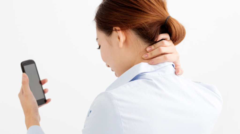 首が前に出てしまうことで姿勢が悪く見えてしまうことや、肩こりや頭痛の原因になることがあります。近年ではストレートネックまたはスマホ首と呼ばれ、スマホを見たり、下向きの姿勢でいることが原因として挙げられます。