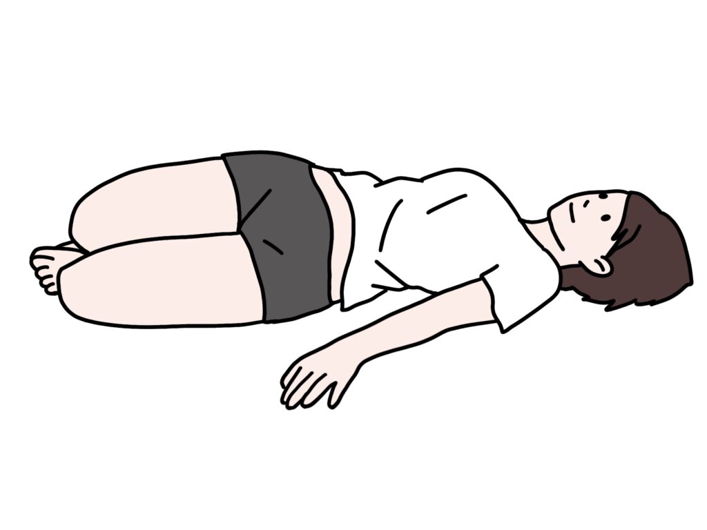 仰向けになり、両膝を曲げます