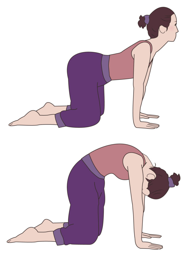 四つん這いになり、背中全体をゆっくり動かしていくストレッチです。