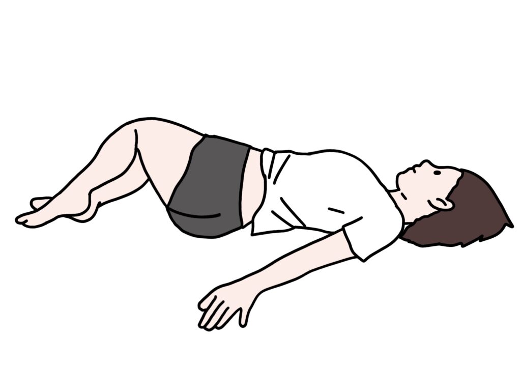 仰向けになり、両膝を曲げます